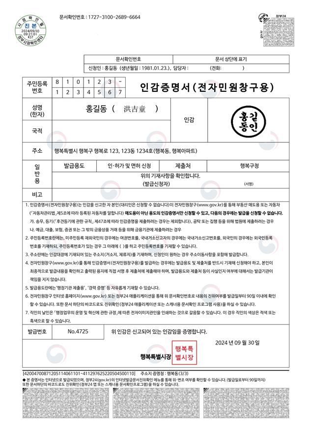 3. 인감증명서는 근무시간 내에 즉시 발급되지만, 시간 외에는 발급이 지연될 수 있습니다.